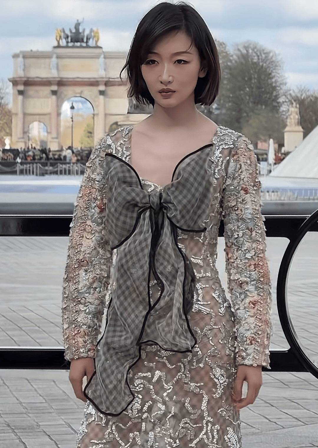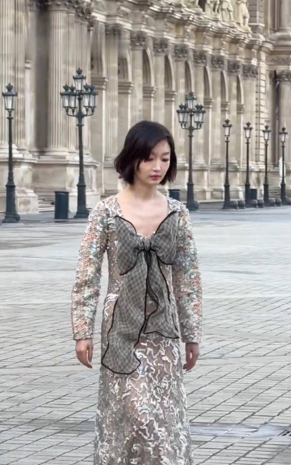 先说巴黎时装周的LV大秀,作为品牌代言人,周冬雨一身全透视装亮相,本想走前卫时尚路线,结果设计完全没适配她的身形。生图里看得清清楚楚,透视材质直接把她身形单薄的短板暴露无遗,肩颈线条又窄又短,没有超模那种舒展的气场,反而显得有些局促;整体比例也被衬得偏短,少了之前的灵动少女感,反而多了几分刻意又违和的尴尬。时尚博主点评说,这次的翻车不是衣服的问题,而是造型选择的失误:女星造型的核心是扬长避短,而不是盲目追前卫。
